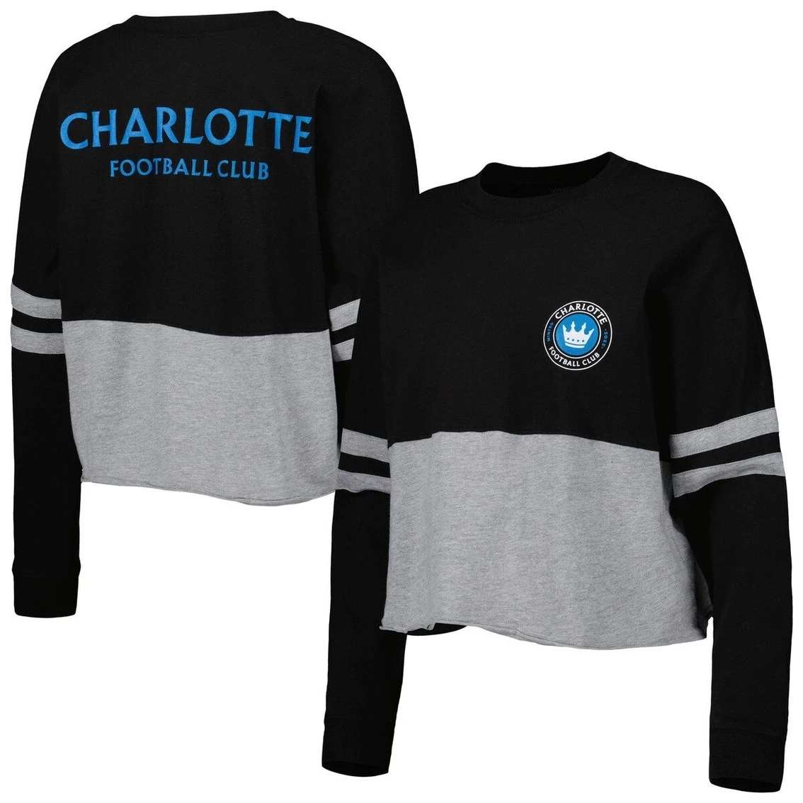 Discount π Boxercraft π© Women's Black Charlotte FC Cropped Retro Jersey Long Sleeve T-Shirt π―