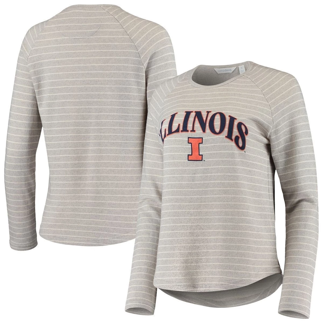 New π Camp David π© Women's Heathered Gray Illinois Fighting Illini Seaside Striped French Terry Raglan Pullover Sweatshirt βοΈ