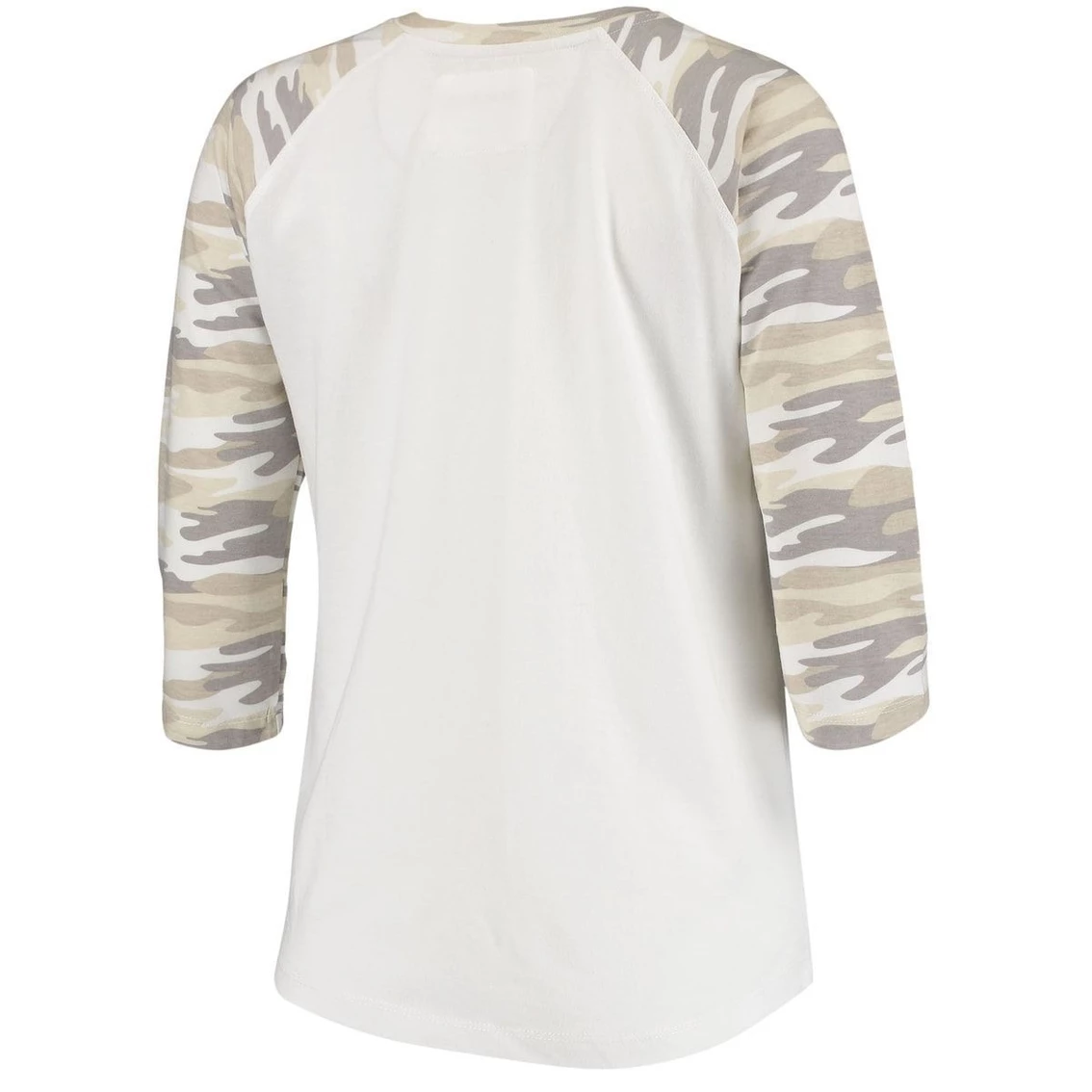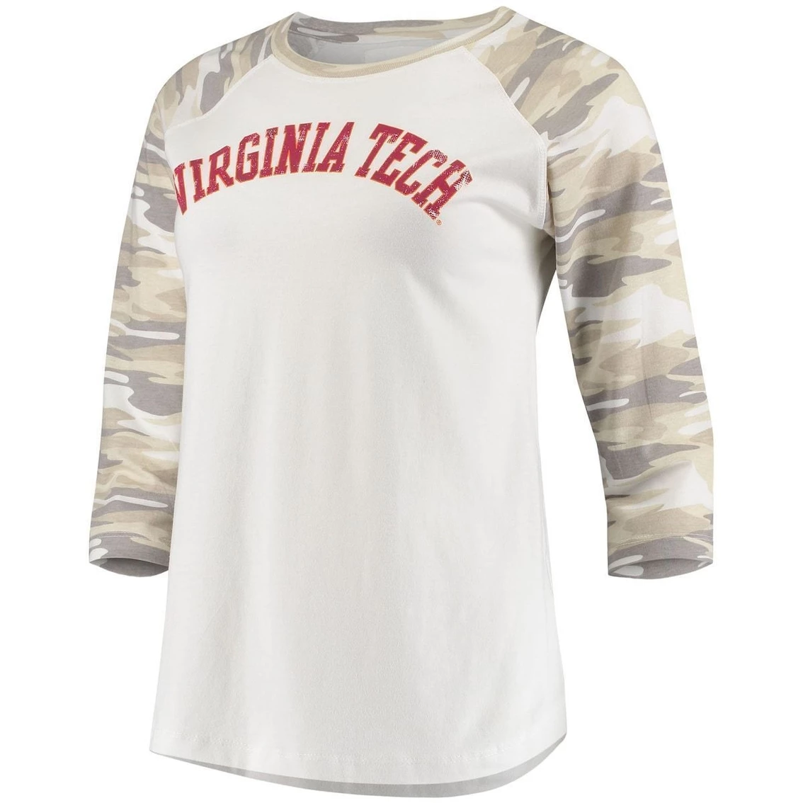 Wholesale ⭐ Camp David 👩 Women's White/Camo Virginia Tech Hokies Boyfriend ⚾ Baseball Raglan 3/4 Sleeve T-Shirt ✔️