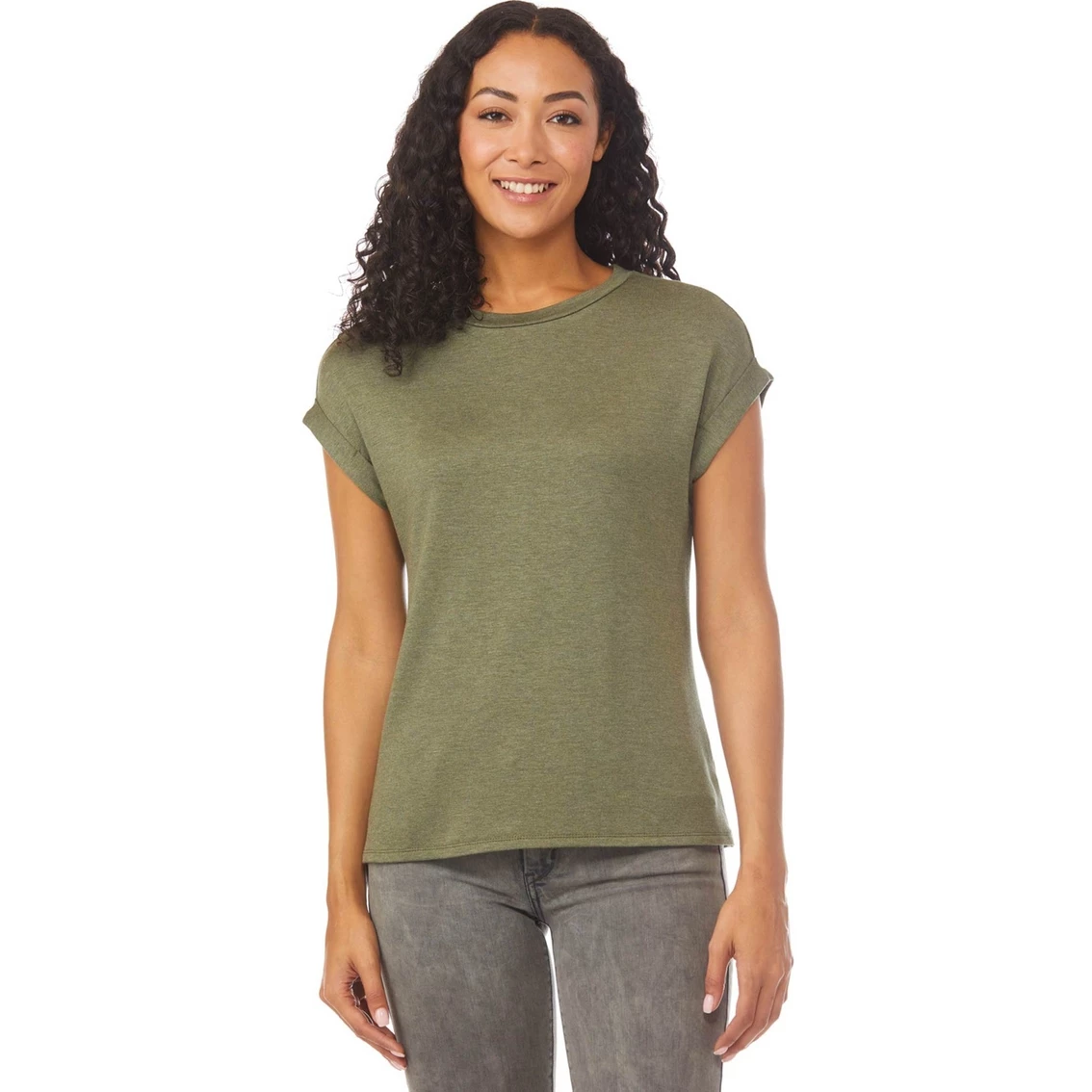A comfortable and stylish women’s top from JW. Dress to impress with this short sleeve design French terry melange top. Effortlessly dress up or down, perfect for work or a casual cool night out with friends. Designed exclusively for the Exchange, JW offers quality designs for great prices. Style: MJN60A.