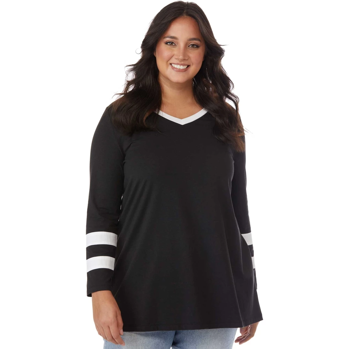 Designed exclusively for the Exchange, JW offers quality designs for great prices. This striped jersey tee brings comfortable casual wear to your weekend wardrobe. It features long sleeves and a V neckline. Made of cotton, rayon and spandex jersey, this top is machine washable for easy care. Style: JAT3058W.