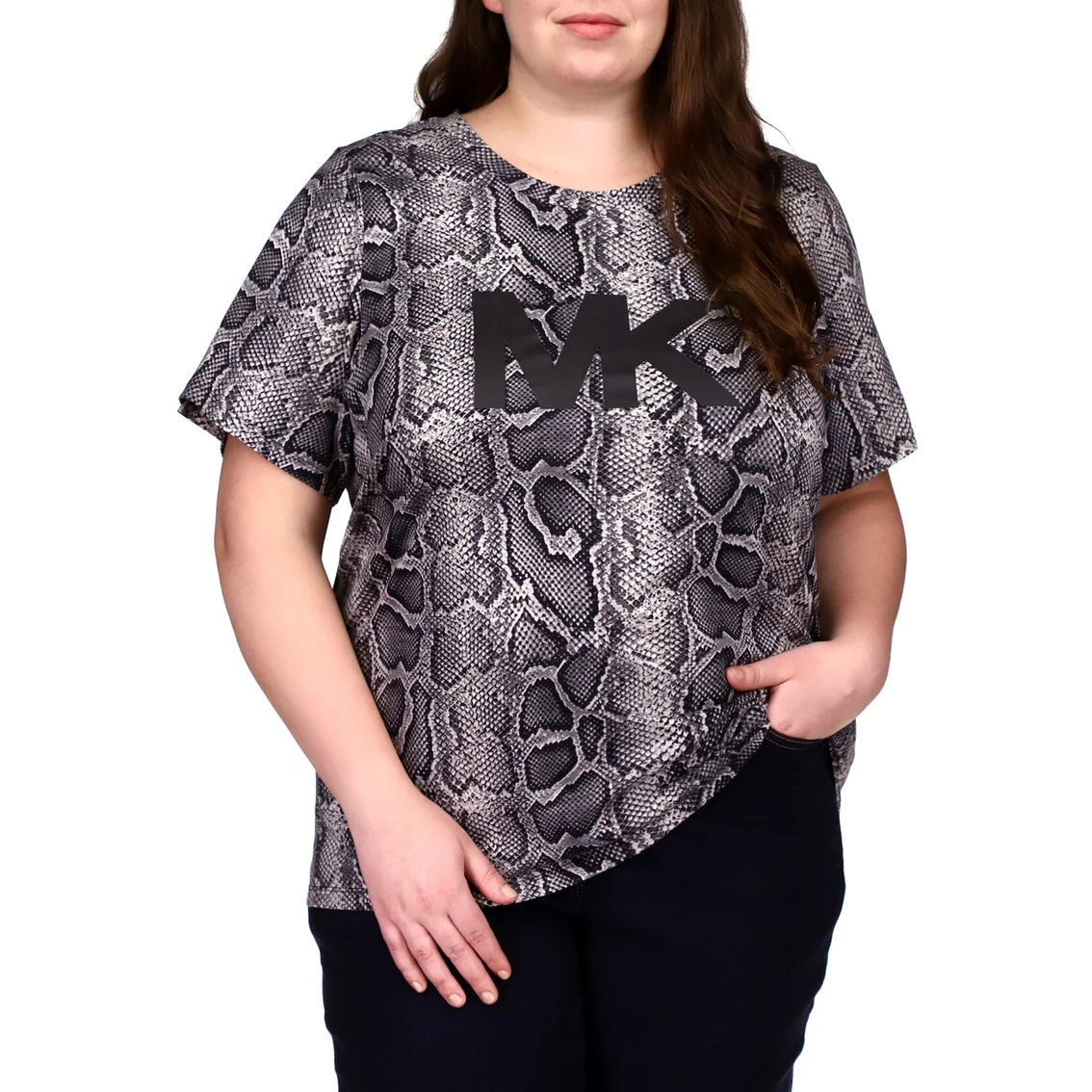 Yes, this is the tee you’ll be reaching for all season long. The Michael Kors Plus Size Snake MK Logo Tee features the iconic MK logo on an edgy snake print. And that’s all you need to make the right impression. Style: WB95MC42RN022.