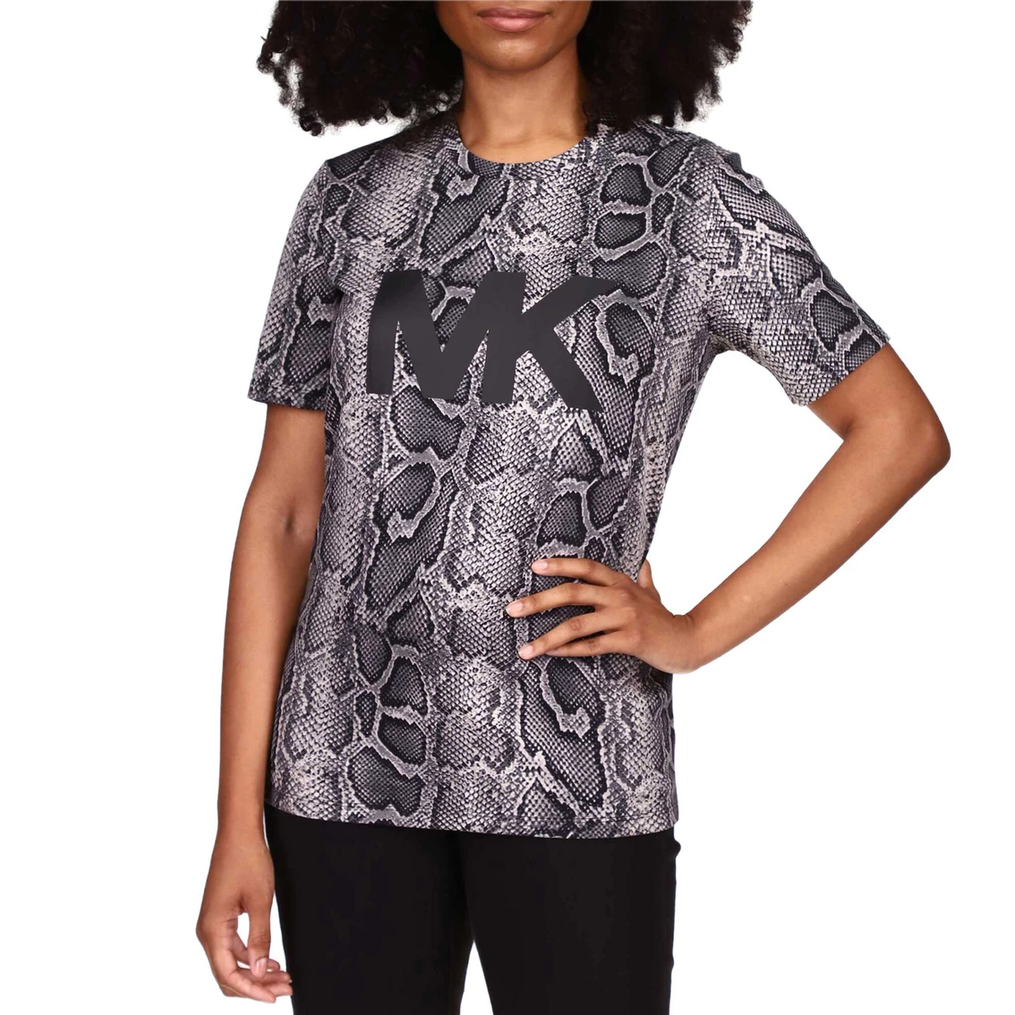 The always needed tee is elevated with the iconic MK logo, featuring snake print detailing and short sleeves. Style: MB95MC42RN022.