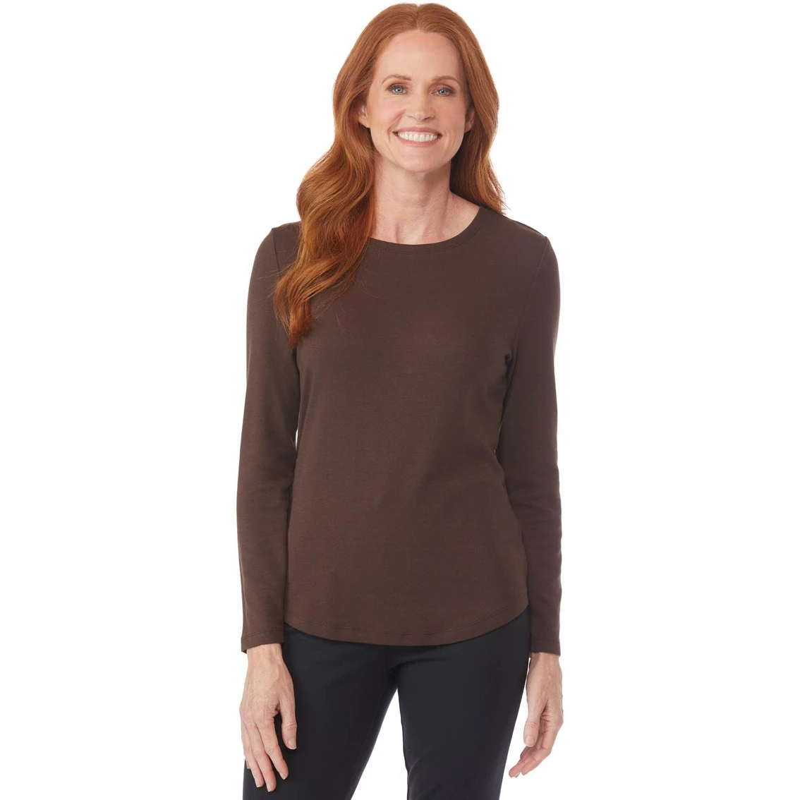 The Basic Crew Neck Tee from Passports works great with a number of looks, including jeans and skirts. Featuring long sleeves, it is made Cotton/Modal/Spandex stretch fabric for comfort. Machine washable for easy care. Style: PPF20807F22A.