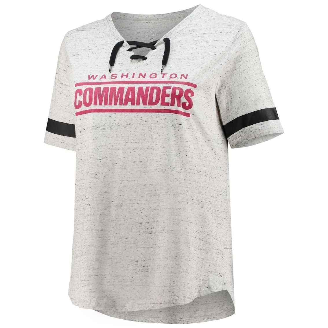 - Showcase your unshakable Washington Commanders fandom with a laid-back look that’s big on team spirit. This T-shirt gives you a lace-up V-neck and features Washington Commanders graphics across the chest, perfect for any game day getup. Plus, the rounded hem helps the shirt rest comfortably, adding to its relaxed fit and feel.