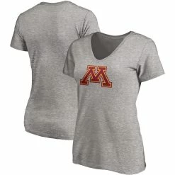 Buy 😀 Women's Fanatics Branded Heathered Gray Minnesota Golden Gophers Primary Logo V-Neck T-Shirt ⌛