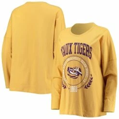 Cheap 😀 Women's League Collegiate Wear Gold LSU Tigers Clothesline Oversized Long Sleeve T-Shirt 😉
