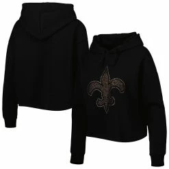 Best Pirce 🥰 Women's Cuce Black New Orleans Saints Crystal Logo Cropped Pullover Hoodie ⭐