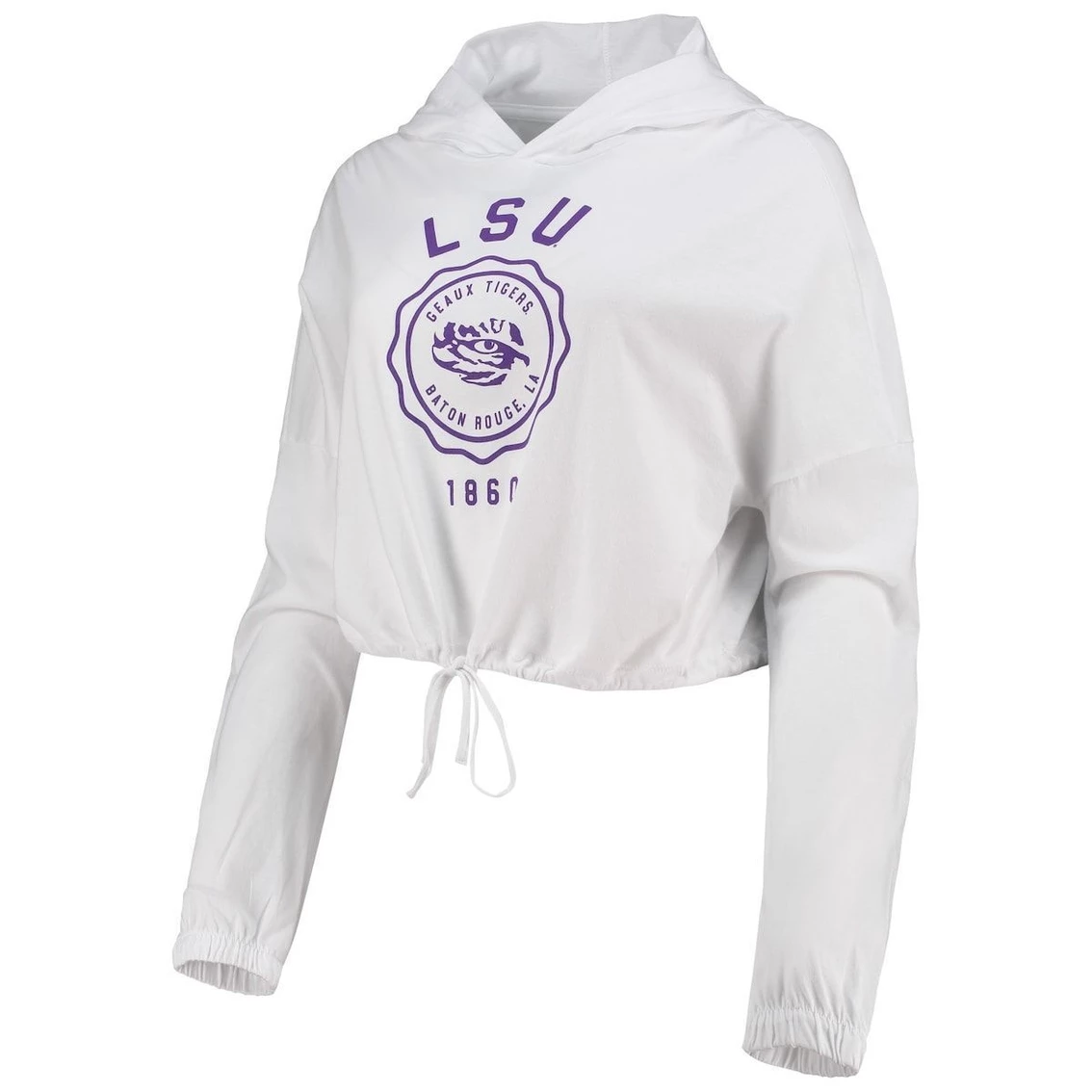 New π Summit Sportswear π© Women's White LSU Tigers Poppy Cinched Cropped Hoodie Long Sleeve T-Shirt π