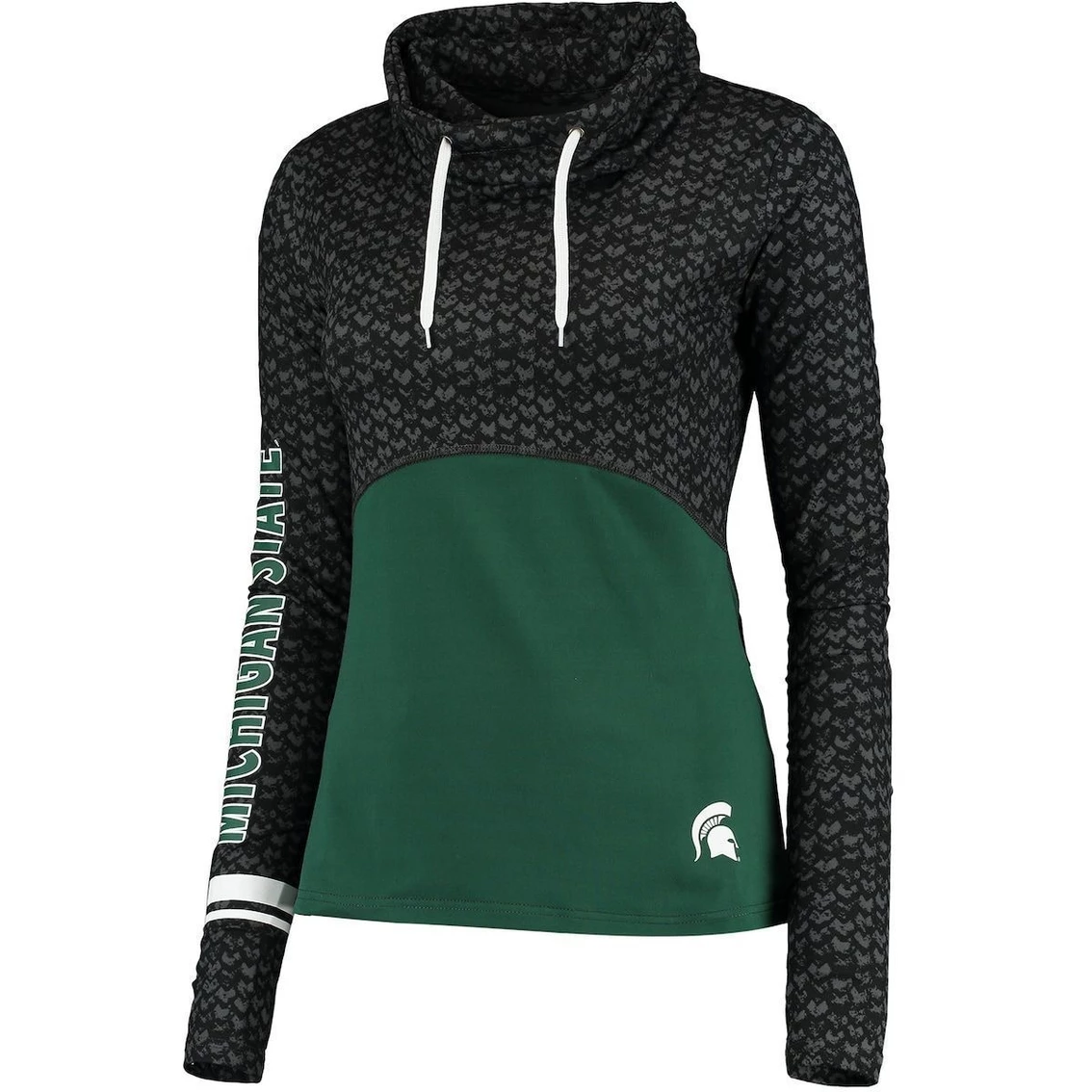 Hot Sale βοΈ Women's Colosseum Black/Green Michigan State Spartans Scaled Cowl Neck Pullover Hoodie π