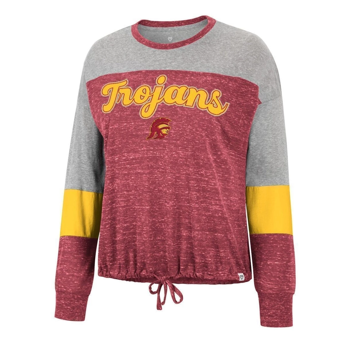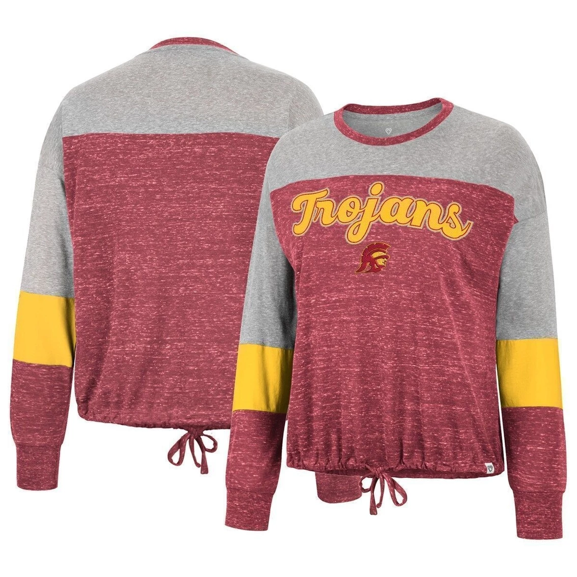 - Add a fun finish to any fan look with this USC Trojans Joanna T-shirt. This top from Colosseum features sleek team graphics and a stylish tie front. Whether tailgating or enjoying a day out, show school spirit with this eye-catching USC Trojans tee.