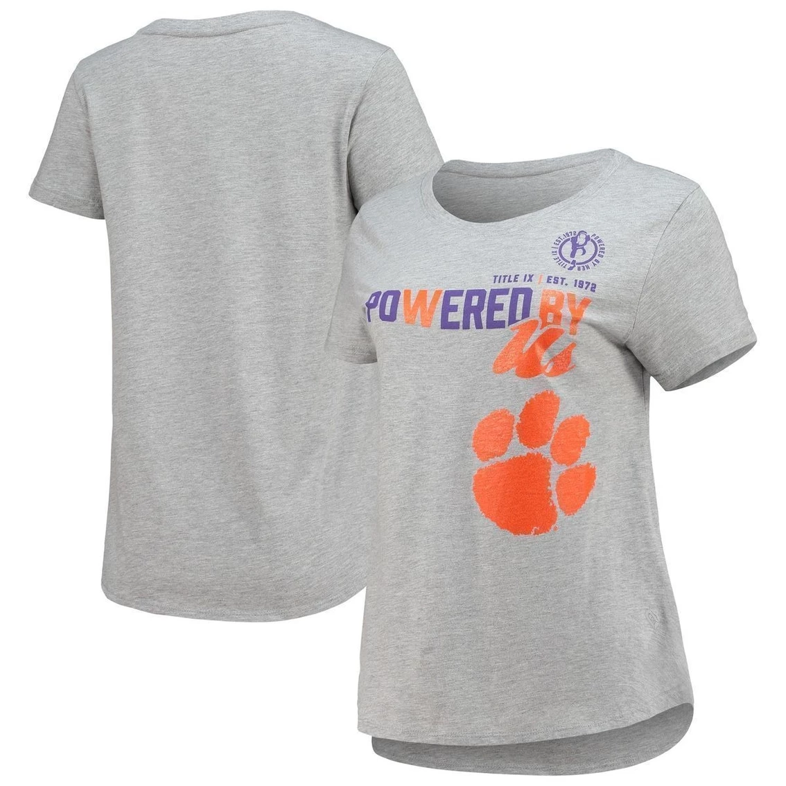 Discount 𧨠Women's Colosseum Heathered Gray Clemson Tigers PoWered By Title IX T-Shirt π