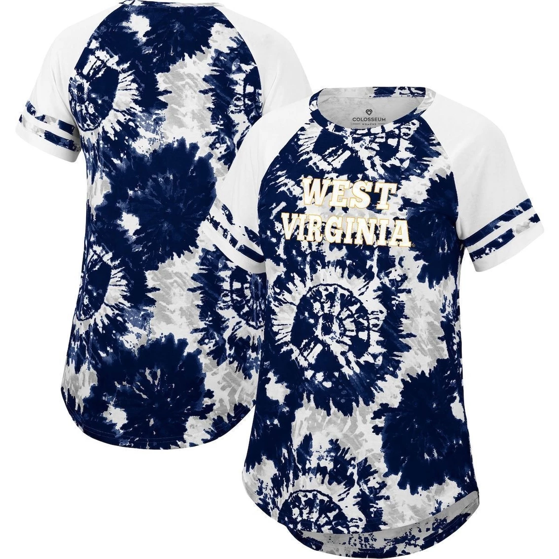 Buy 🥰 Women's Colosseum Navy/White West Virginia Mountaineers Annie Oversized Tie-Dye Raglan T-Shirt 🥰