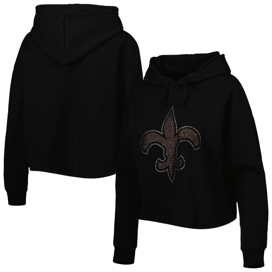 - If you’re searching for a stylish New Orleans Saints game day top, then look no further than this Crystal Logo pullover hoodie from Cuce. It features a radiant team rhinestone embellishment that lets your unwavering fandom shine to the rest of the world. The cropped hem is sure to make this fashionable piece your next go-to option for cheering on the New Orleans Saints.