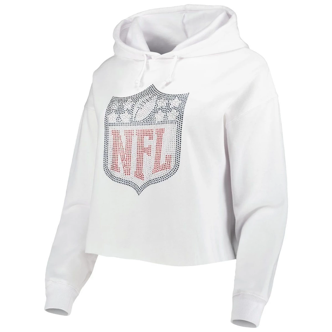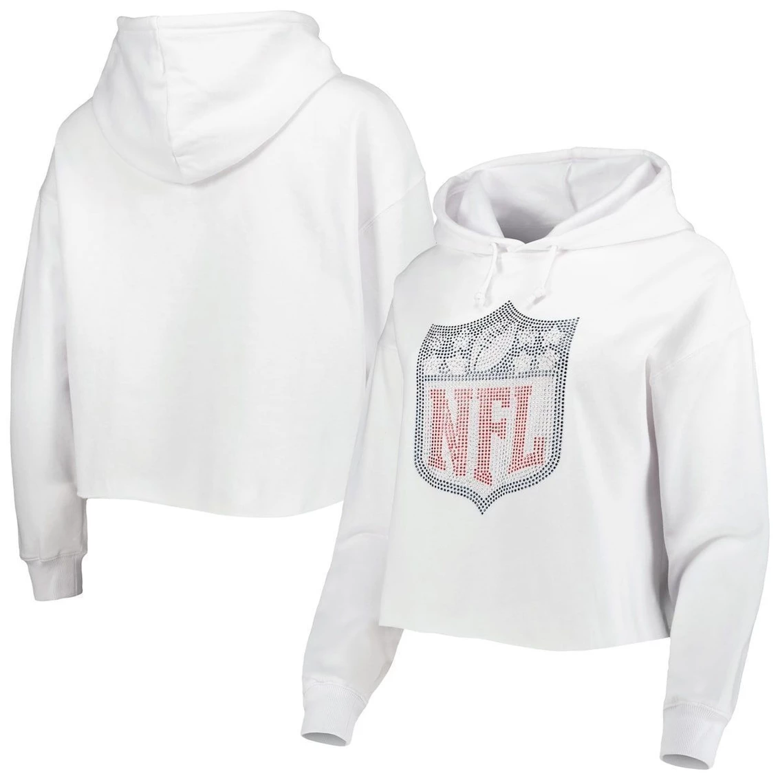 - If you’re searching for a stylish top that exuberates your NFL fandom, then look no further than this Crystal Logo pullover hoodie from Cuce. It features a radiant league rhinestone embellishment that is sure to get you pumped up to watch your favorite NFL players in action. The cropped hem makes this fashionable piece your next go-to option for football Sunday.