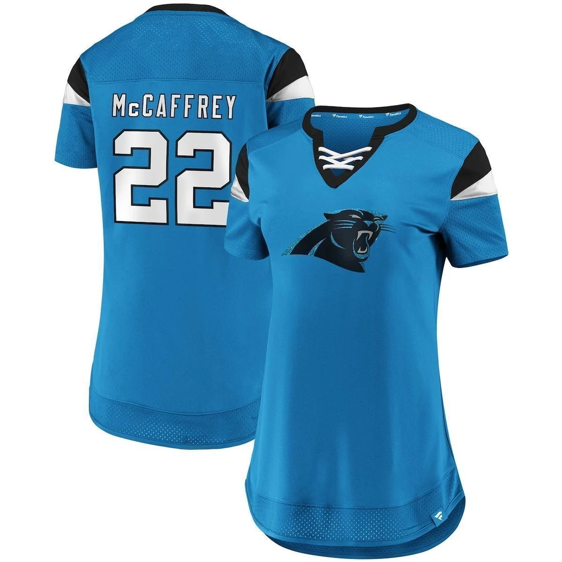 Best Pirce π Women's Fanatics Branded Christian McCaffrey Blue Carolina Panthers Athena Name & Number Fashion Top π