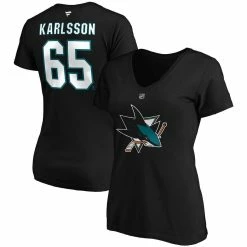 - Your die-hard loyalty to the San Jose Sharks is unmatched by anyone. Now you can put your fandom over the top when you get this Erik Karlsson Authentic Stack Name and Number V-neck T-shirt. This Fanatics Branded tee features distinctive San Jose Sharks graphics on the front and back, perfect for wearing around town.