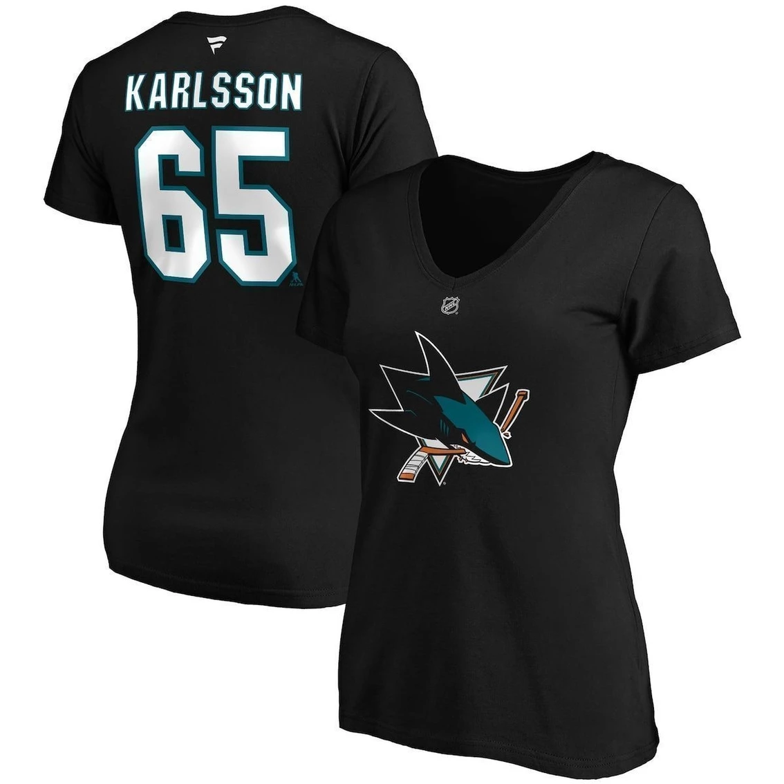 Brand new π Women's Fanatics Branded Erik Karlsson Black San Jose Sharks Authentic Stack Name & Number V-Neck T-Shirt π§¨