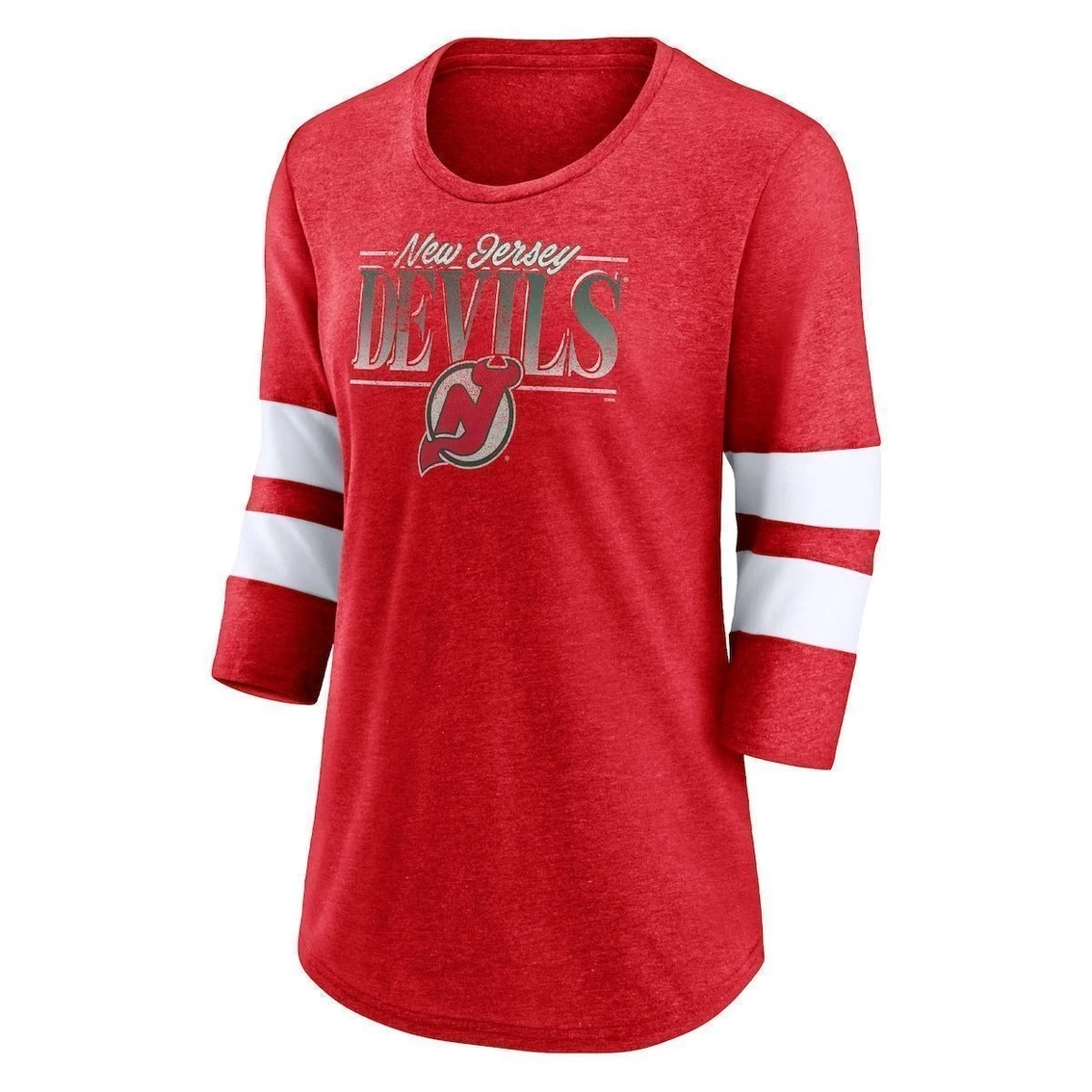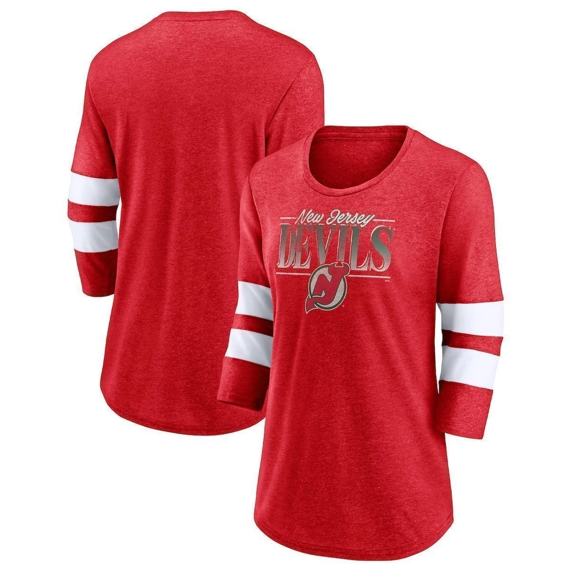 Flash Sale π Women's Fanatics Branded Heathered Red/White New Jersey Devils Full Shield 3/4-Sleeve Tri-Blend Raglan Scoop Neck T-Shirt π