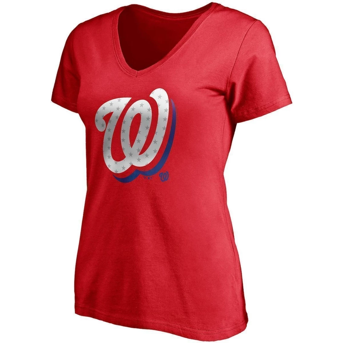 - Take a patriotic approach to cheering on the Washington Nationals with this Red White and Team V-neck T-shirt. This Fanatics Branded T-shirt features a classic design and a unique take on the team’s logo. Leave no question about team loyalty with this striking Washington Nationals T-shirt.