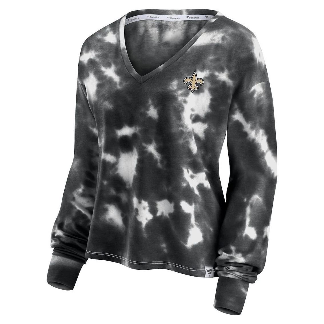 - Cozy into your fandom with this Sport Resort V-neck T-shirt from Fanatics Branded. This New Orleans Saints top has a comfortable, long-sleeve design, and the tie-dye pattern keeps it on-trend. Plus, the team colors and logo ensure your loyalty to the New Orleans Saints won’t go unnoticed.