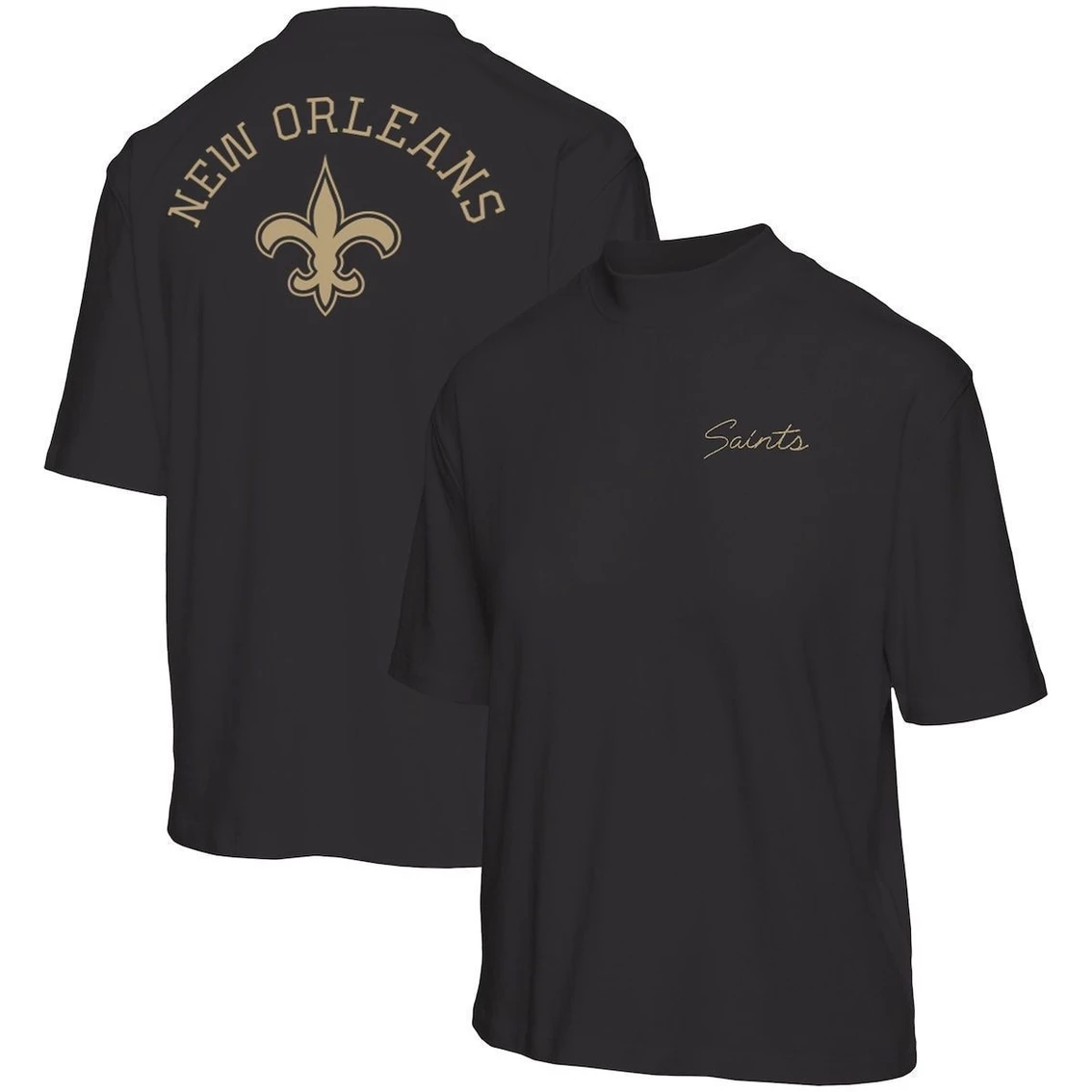 Hot Sale π₯° Women's Junk Food Black New Orleans Saints Half-Sleeve Mock Neck T-Shirt β¨