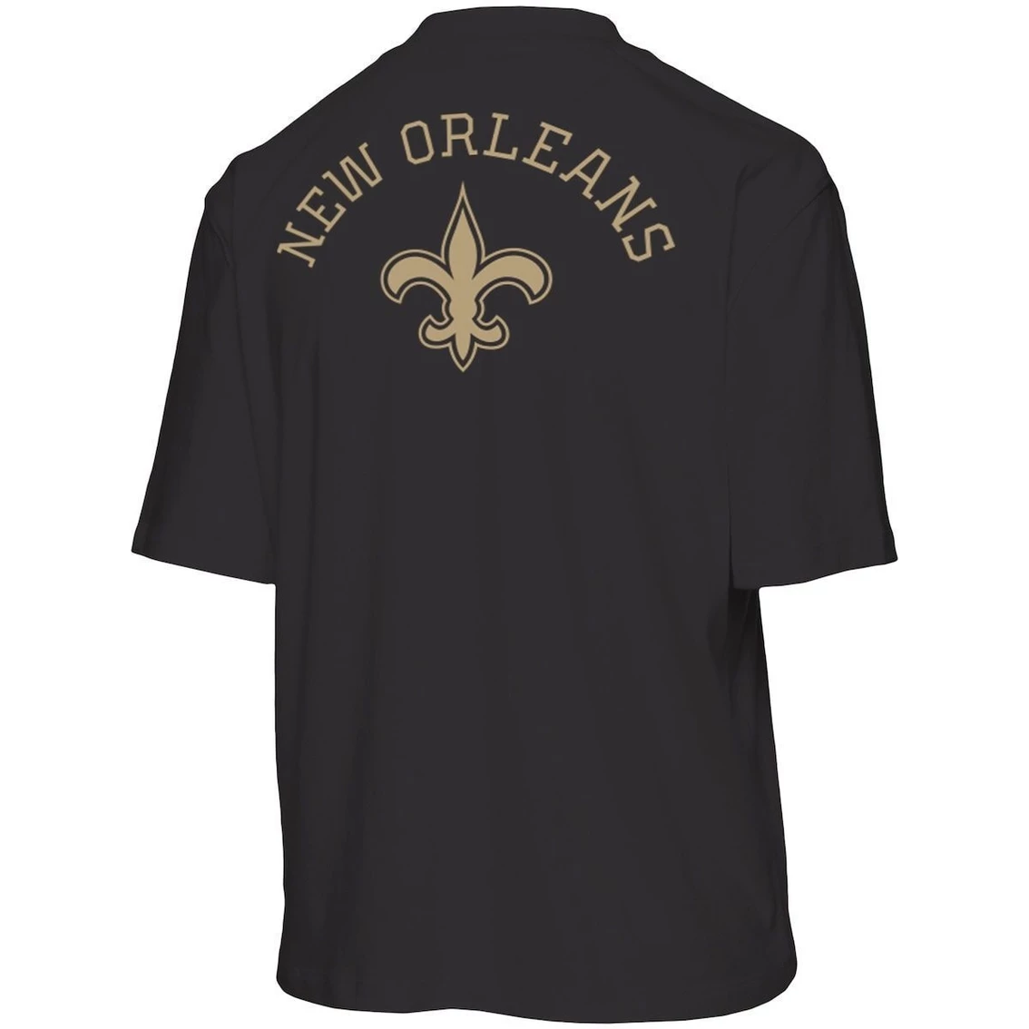 - Add a new laid-back look to your collection of New Orleans Saints apparel with this T-shirt from Junk Food. It features bold team graphics on the front and back, comfy half sleeves and a mock neck that offers a distinct look. Pair this tee with your favorite hat or other New Orleans Saints accessory on game day and show how deep your devotion to your favorites runs.