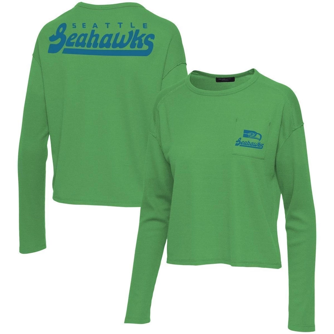 Best Sale π Women's Junk Food Neon Green Seattle Seahawks Pocket Thermal Long Sleeve T-Shirt π