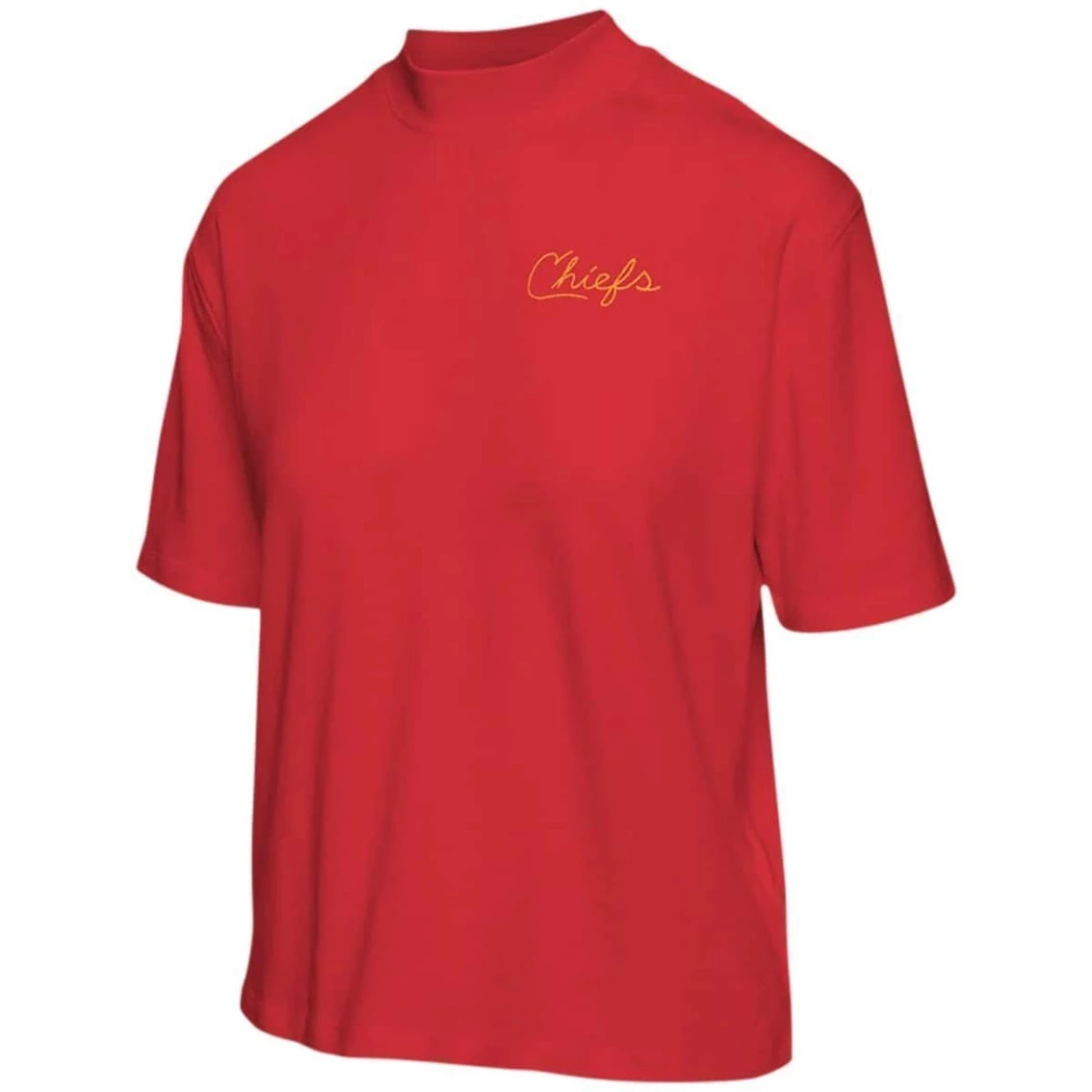 SKU: DSCO1141973350 Categories: T-Shirts, Tops, Women's Clothing Tags: Clothing & Accessories, Junk Food, T-Shirts, Women's Junk Food Red Kansas City Chiefs Half-Sleeve Mock Neck T-Shirt