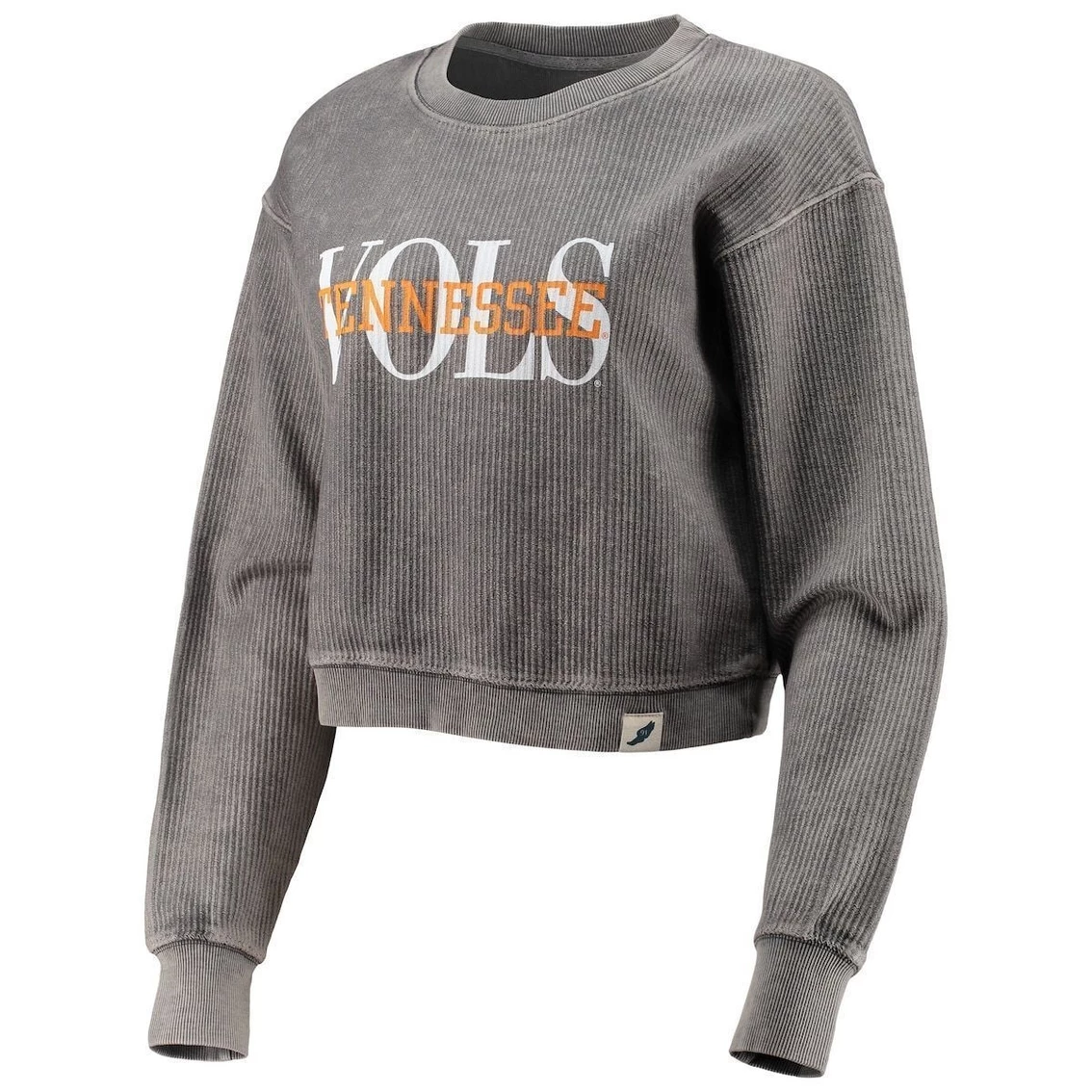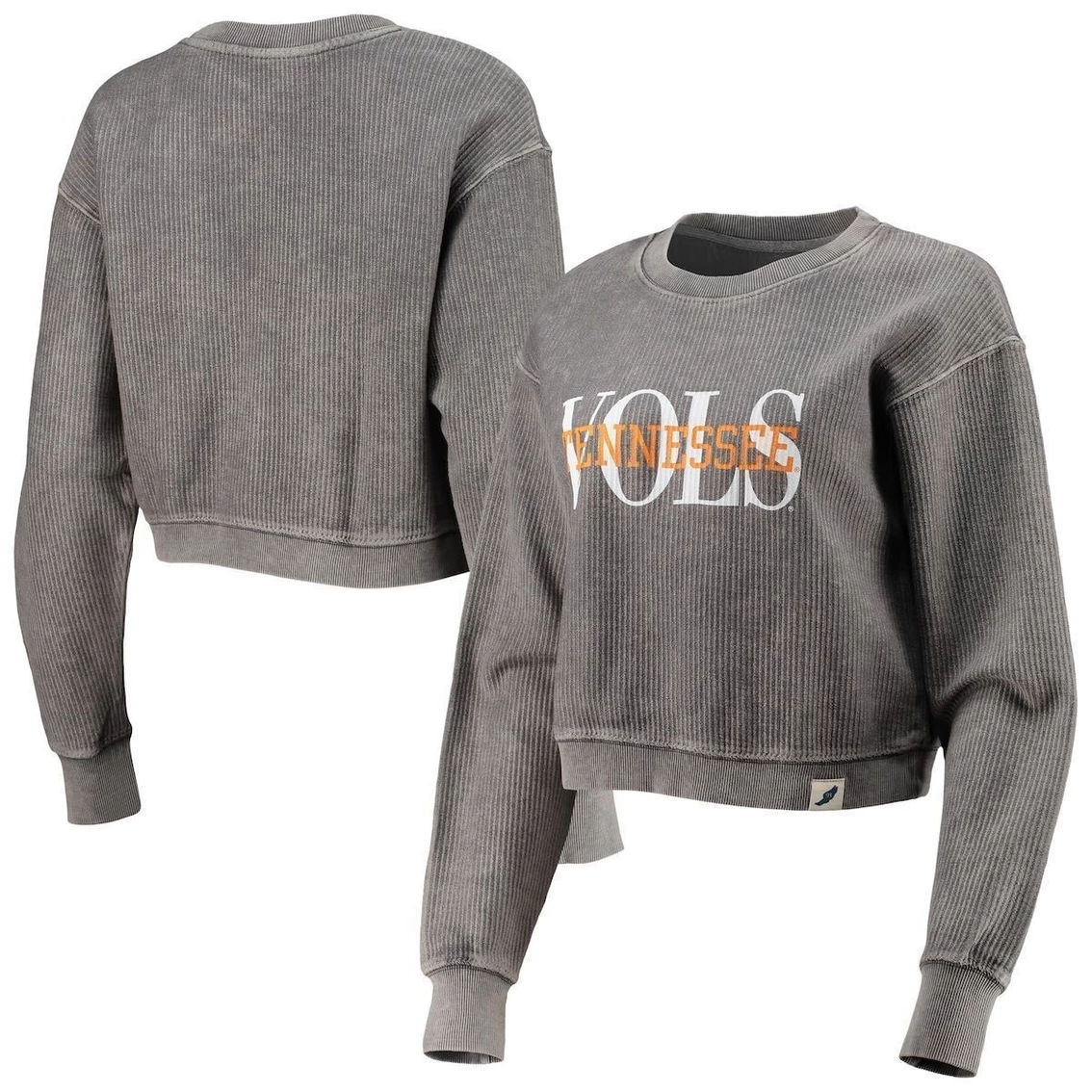 Wholesale ❤️ Women's League Collegiate Wear Graphite Tennessee Volunteers Classic Corded Timber Crop Pullover Sweatshirt 🤩