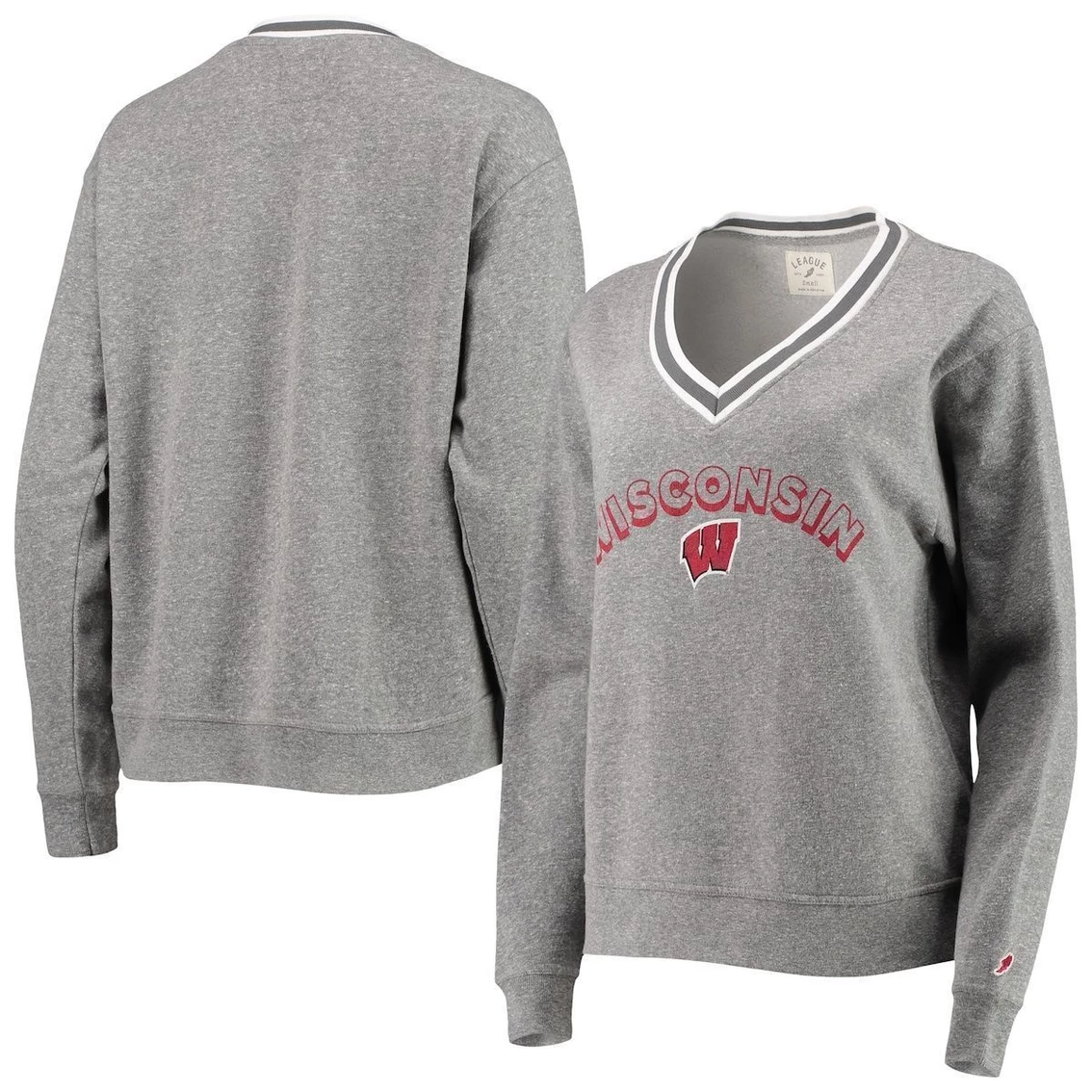 - Show your favorite school some love with this Victory Springs sweatshirt from League Collegiate Wear. It features a stylish, striped V-neck and the team name in blocked letters. Great for chilly Wisconsin Badgers game days, this midweight pullover features cozy tri-blend fleece. Its retro design puts a classic twist on your Wisconsin Badgers collection.