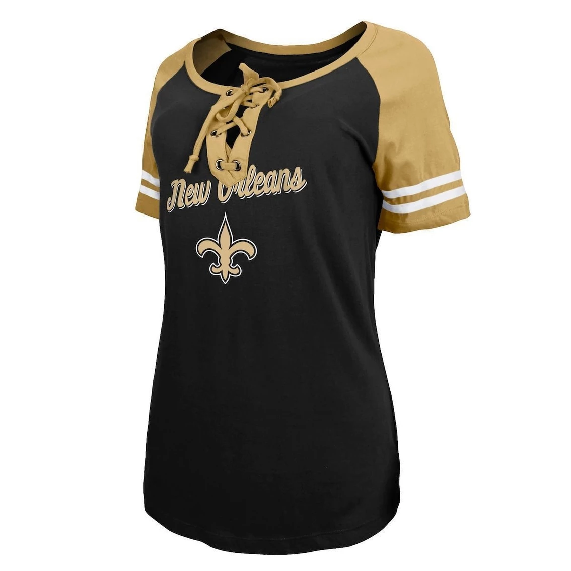 Brand new π₯° Women's New Era Black/Gold New Orleans Saints Logo Lace-Up Raglan T-Shirt π§¨