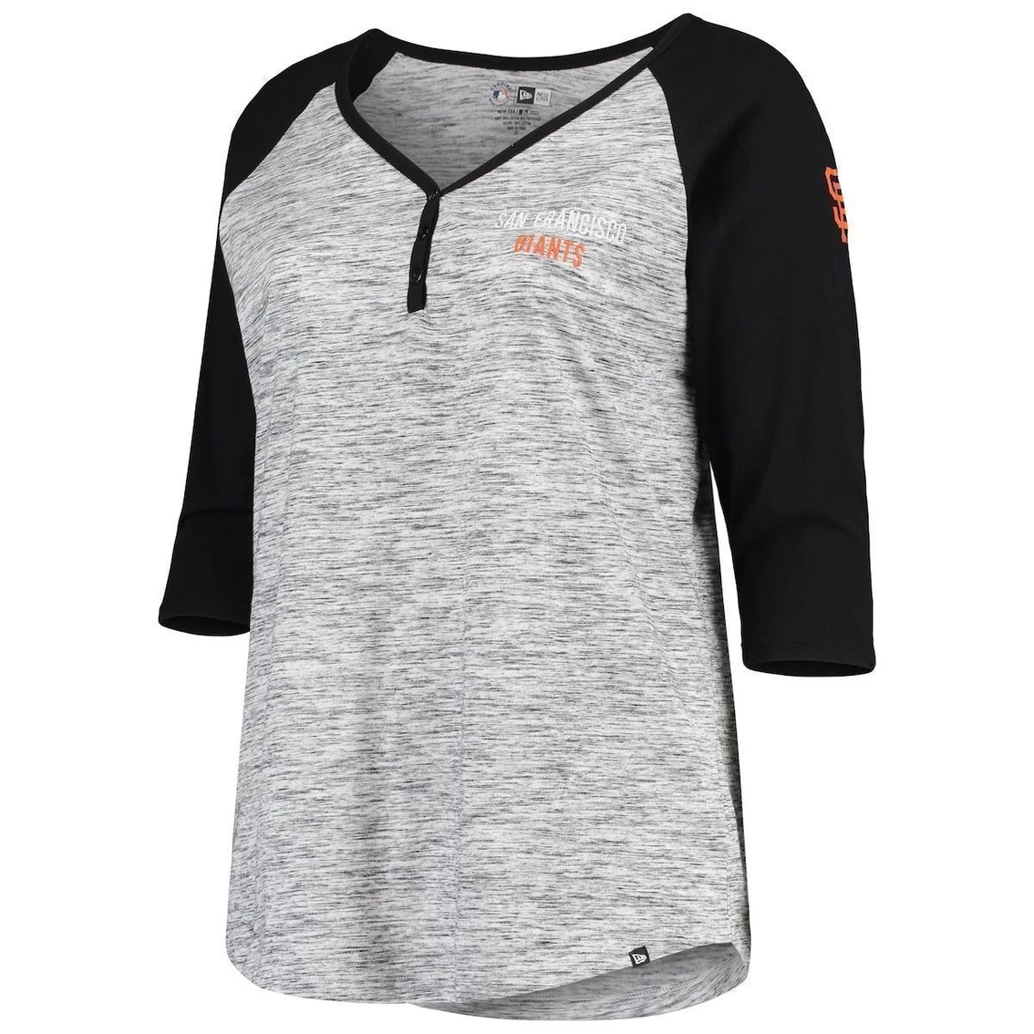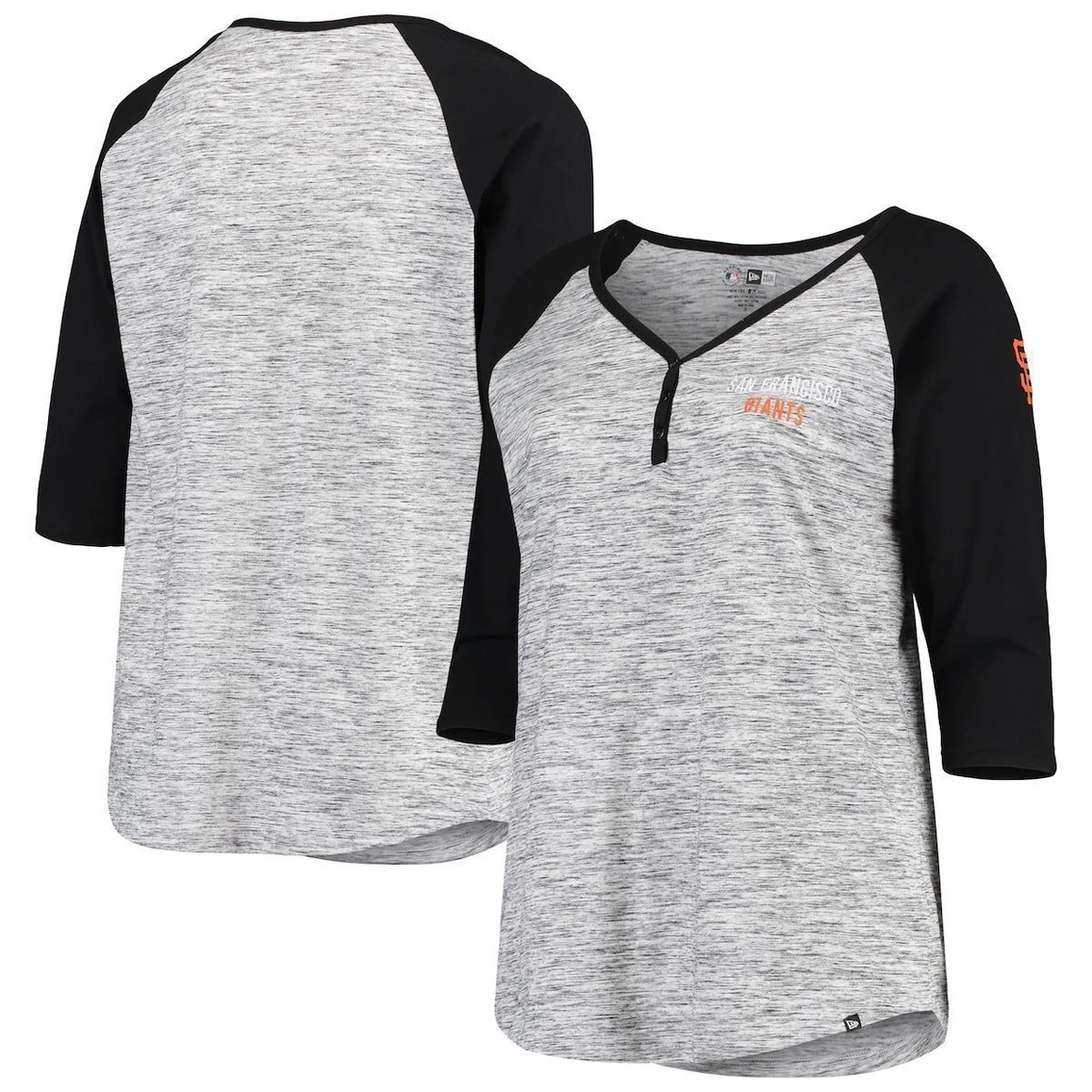 - Stay fashionable as you root for your San Francisco Giants by wearing this 3/4-Sleeve Raglan T-shirt to the next big game. With its alluring Henley design and stylish space dye fabric, this New Era tee features distinct San Francisco Giants graphics on the chest and sleeve, so you can be positive your team is well represented. Cheer louder in this comfy cotton-poly tee.