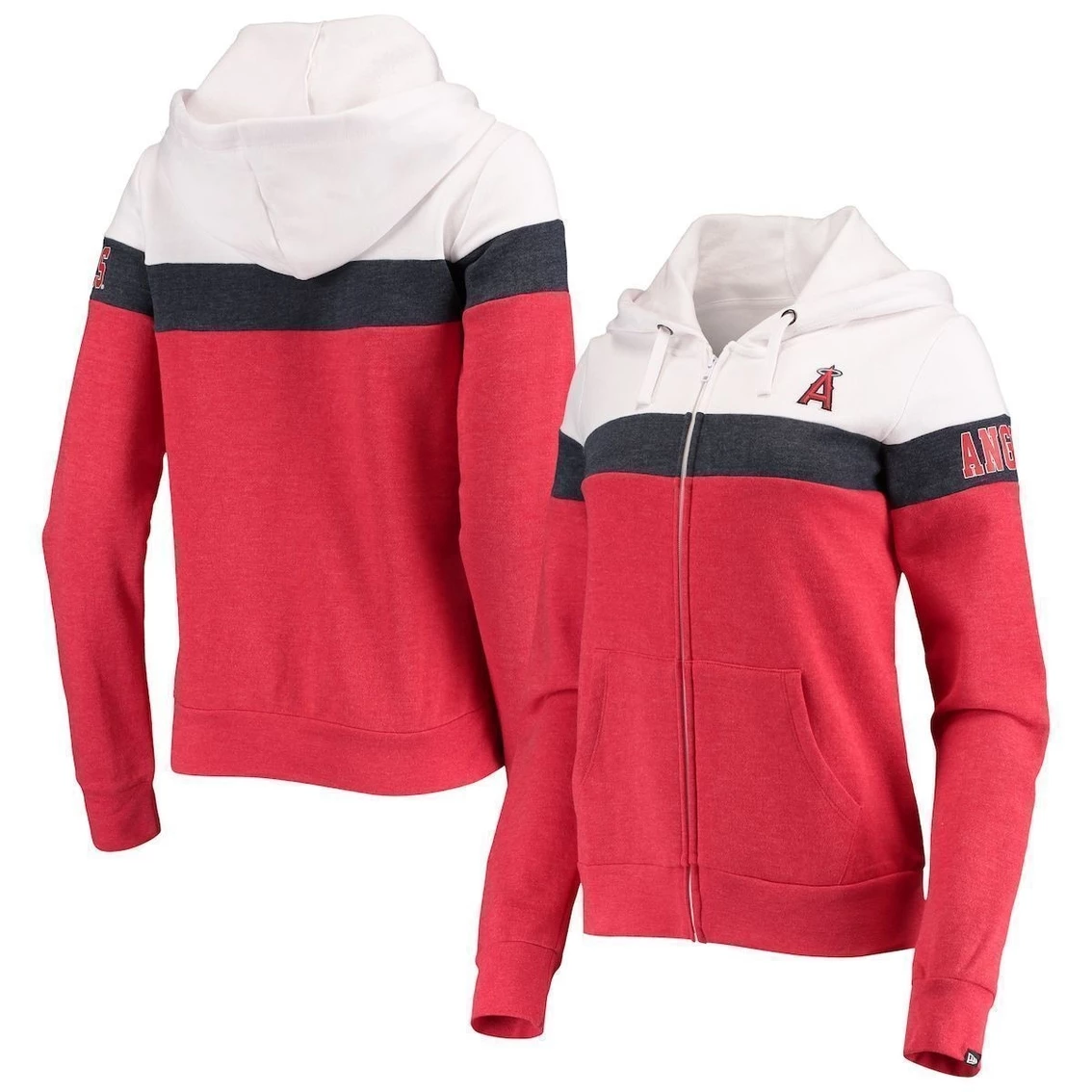 Buy π€© Women's New Era Heathered Red Los Angeles Angels Colorblock Full-Zip Hoodie Jacket π