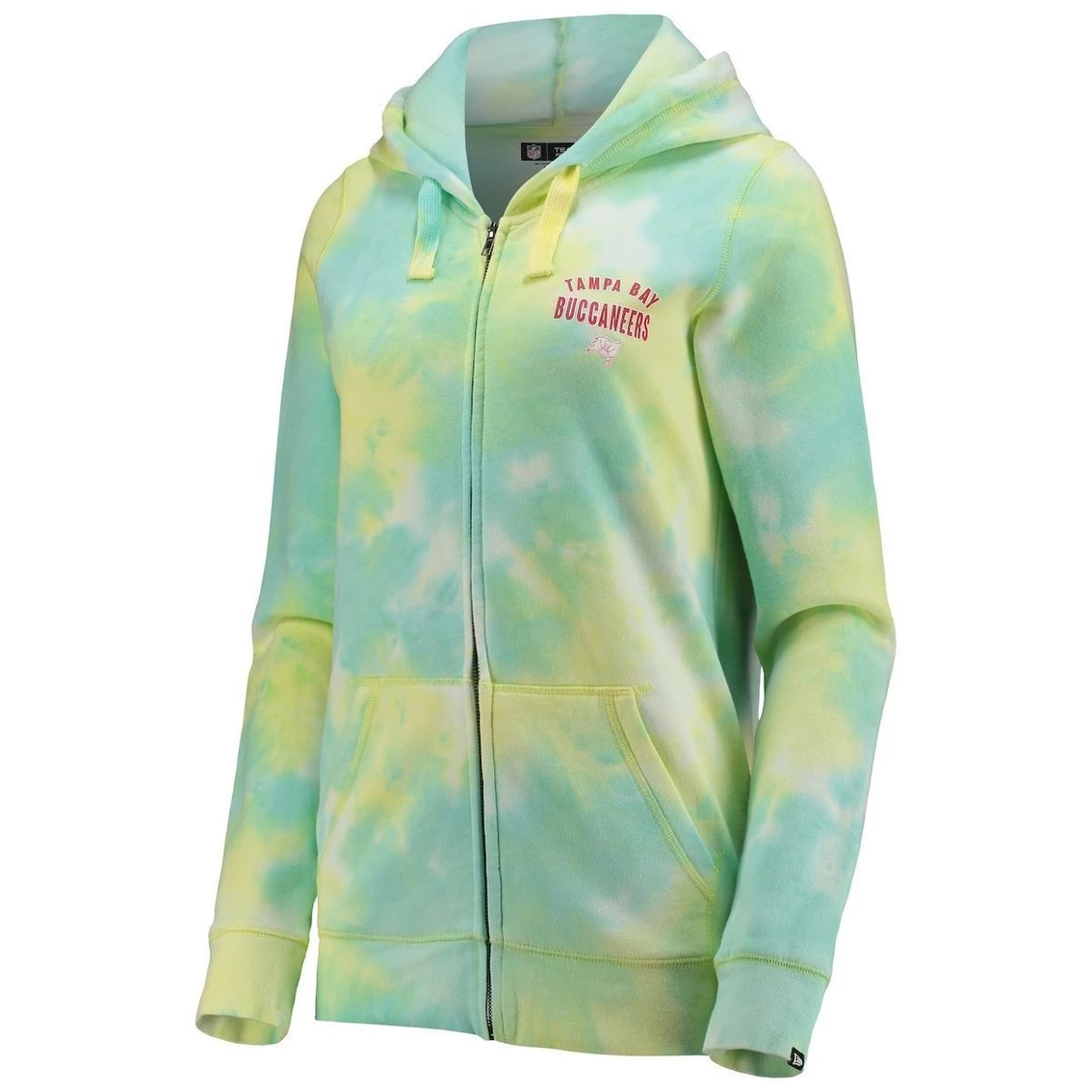 - This Tampa Bay Buccaneers full-zip hoodie by New Era supplies casual comfort and style. A midweight design and fleece lining offer a warm, snug feel. Plus, the trendy ice, tie-dye pattern complements the bold Tampa Bay Buccaneers graphics for a distinct look.