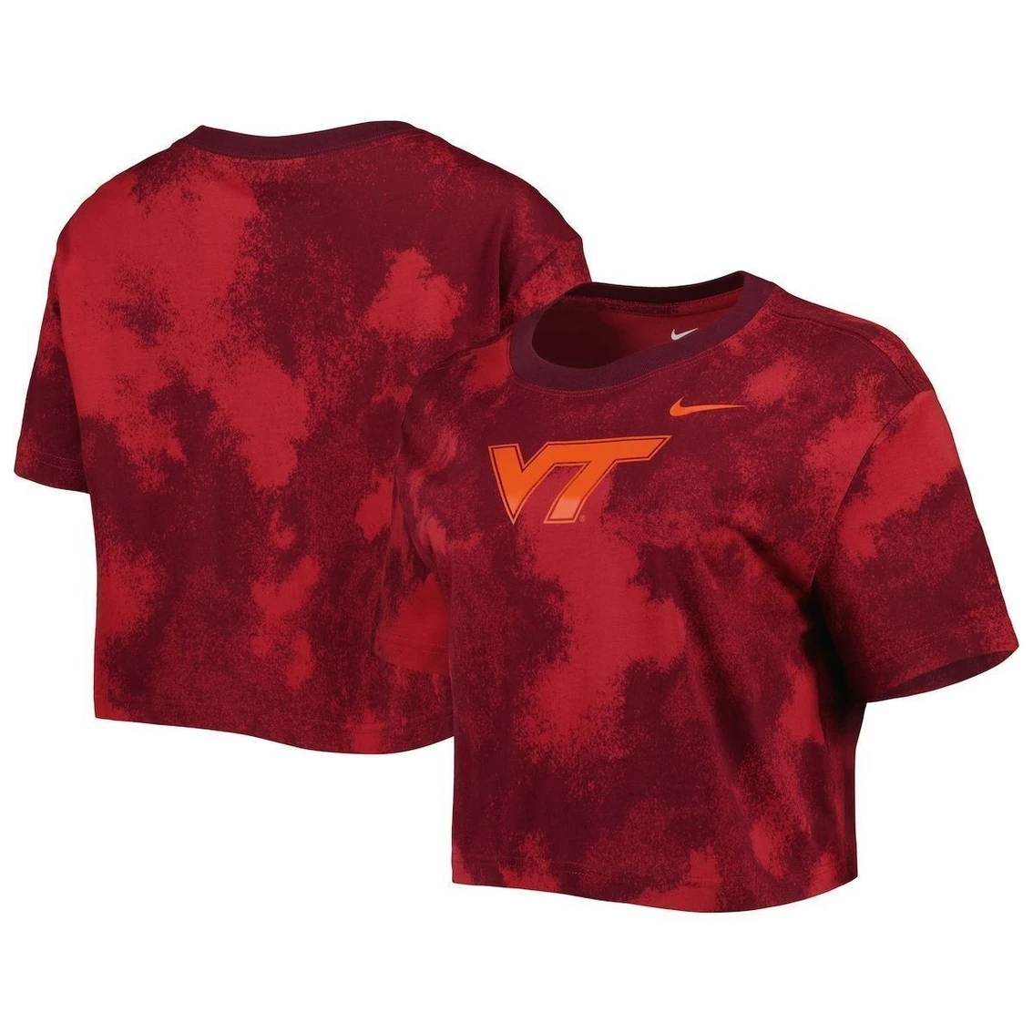 - Flex your Virginia Tech Hokies spirit in a charming fashion with this Cropped T-shirt from Nike. The allover tie-dye pattern coordinates with the bold Virginia Tech Hokies graphics for a chic, spirited look. Plus, the loose fit allows the top to rest comfortably at the shoulders and waist for a cozy feel.