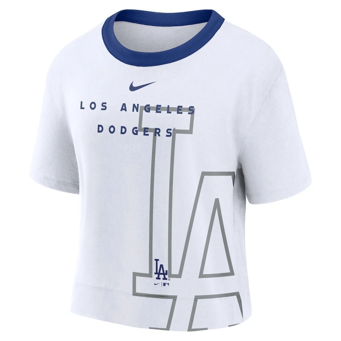 - This Team First High Hip Boxy T-shirt from Nike offers you the perfect blend of Los Angeles Dodgers spirit and fashion. It offers a wide droptail hem for added shape and coverage as well as super-soft fabric to keep you comfortable. Featuring striking Los Angeles Dodgers graphics and contrasting collar, this tee boldly displays your unwavering pride and style.