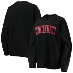 Promo π€© Women's Pressbox Black Cincinnati Bearcats Comfy Cord Vintage Wash Basic Arch Pullover Sweatshirt π₯