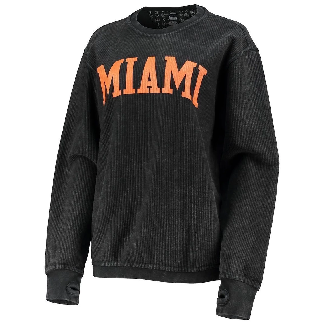Best Sale π Women's Pressbox Black Miami Hurricanes Comfy Cord Vintage Wash Basic Arch Pullover Sweatshirt π§¨