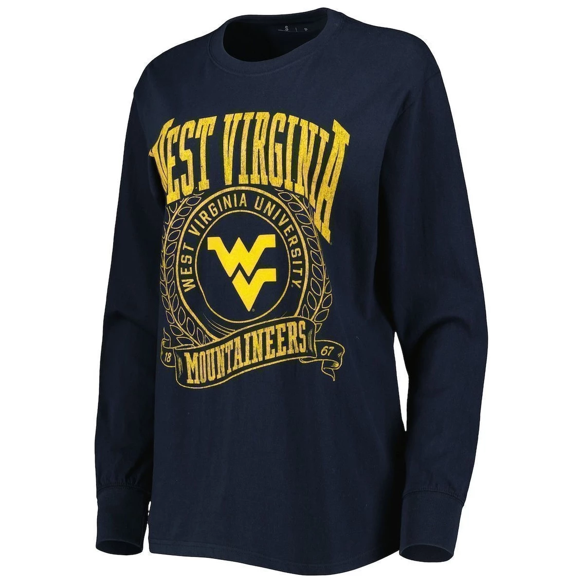 Best Pirce π Women's Pressbox Navy West Virginia Mountaineers Big Country Laurels Long Sleeve T-Shirt π