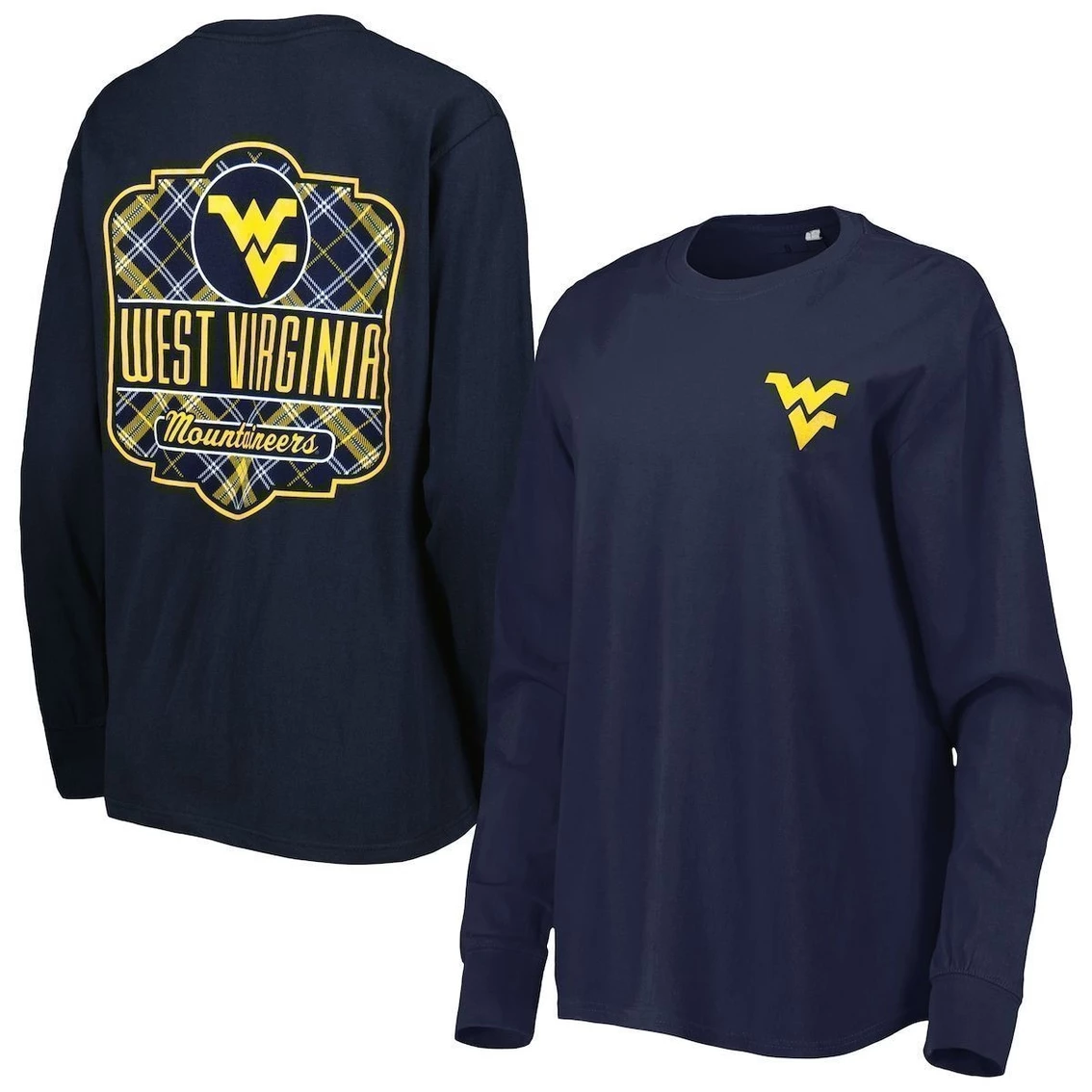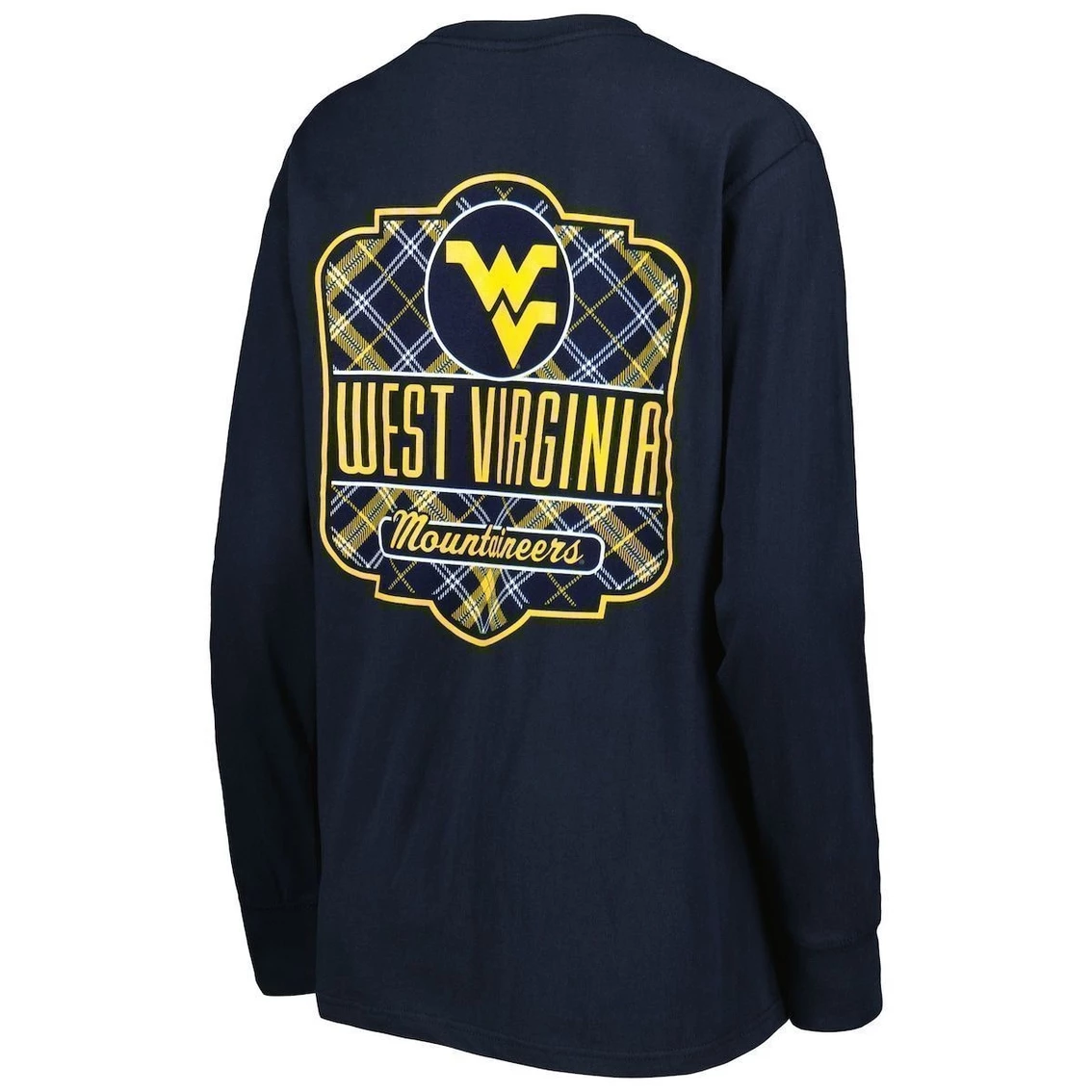 Budget π Women's Pressbox Navy West Virginia Mountaineers Valencia Plaid 2-Hit Long Sleeve T-Shirt π€©
