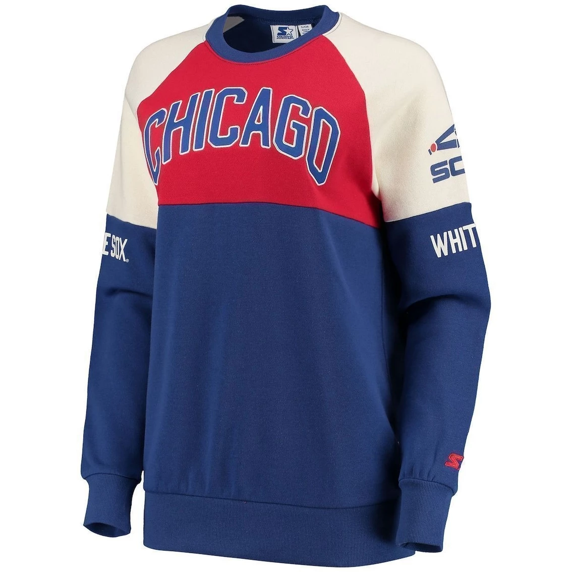 Best reviews of 🥰 Women's Starter Red/Royal Chicago White Sox Baseline Raglan Historic Logo Pullover Sweatshirt ✔️