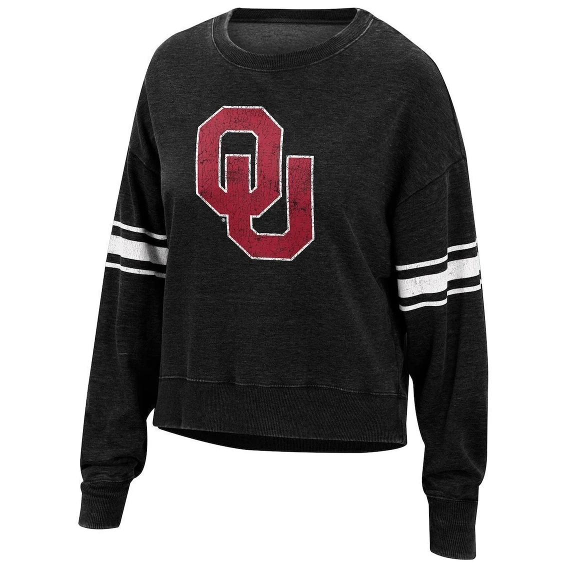 Wholesale π― Women's Top Of The World Black Oklahoma Sooners Camden Sleeve Stripe Washed Pullover Sweatshirt π§¨