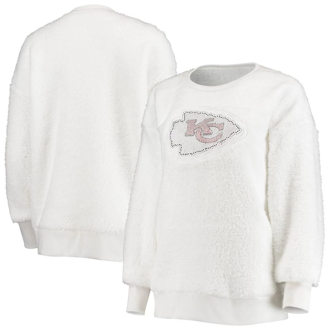 - Cheer on the Kansas City Chiefs with your fandom shimmering in this Milestone Tracker pullover sweatshirt from Touch. It features an embroidered applique of the Kansas City Chiefs logo accented by sparkly rhinestones. The fluffy exterior also creates a soft and cozy feel.