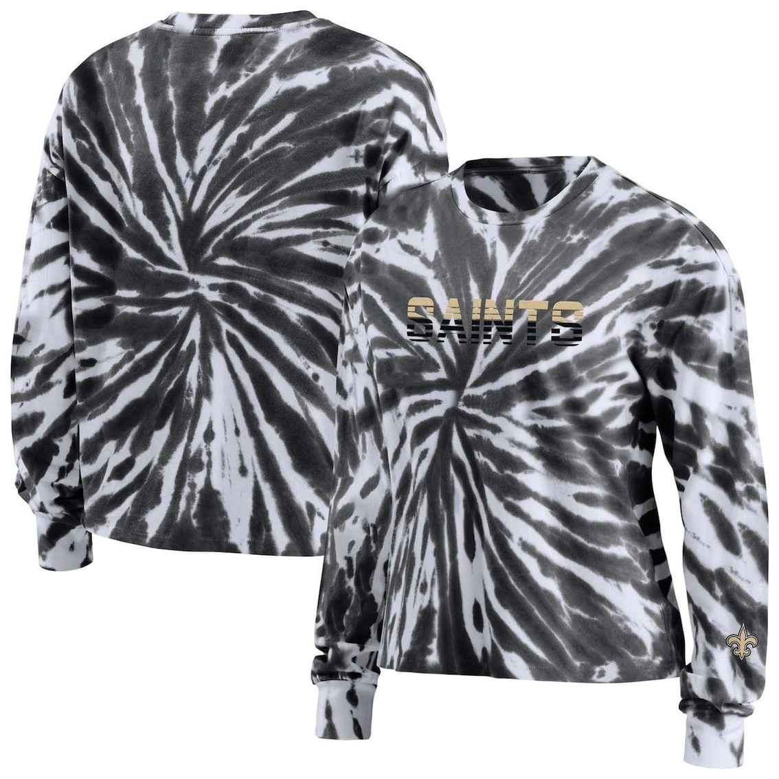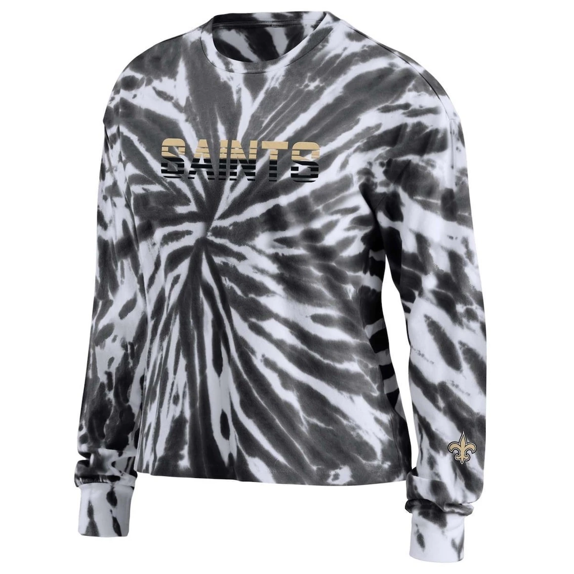 Flash Sale π Women's WEAR By Erin Andrews Black New Orleans Saints Tie-Dye Cropped Long Sleeve T-Shirt β¨