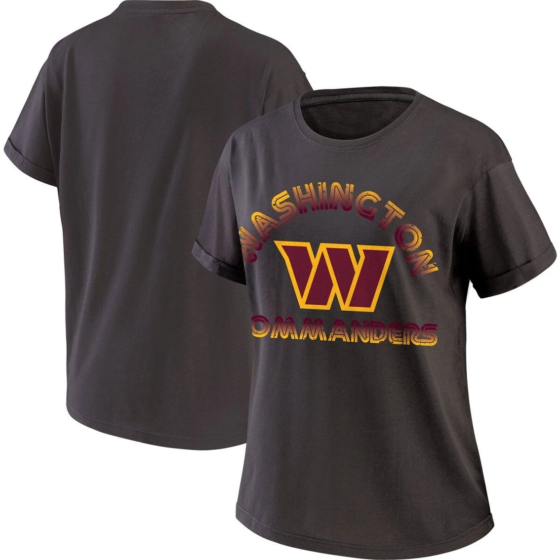 - Combine style and comfort on Washington Commanders game day with this Oversized Boyfriend T-shirt from WEAR by Erin Andrews. It features the Washington Commanders name in an ombre-like design and cuffed sleeves for a touch of sophistication. The looser silhouette also creates a more comfortable feel.