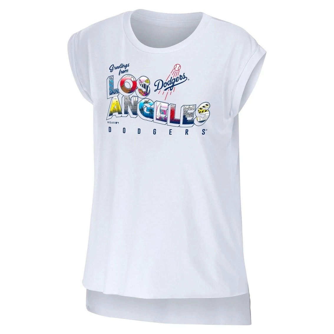 Cheap ✔️ Women's WEAR By Erin Andrews White Los Angeles Dodgers Greetings From T-Shirt ❤️